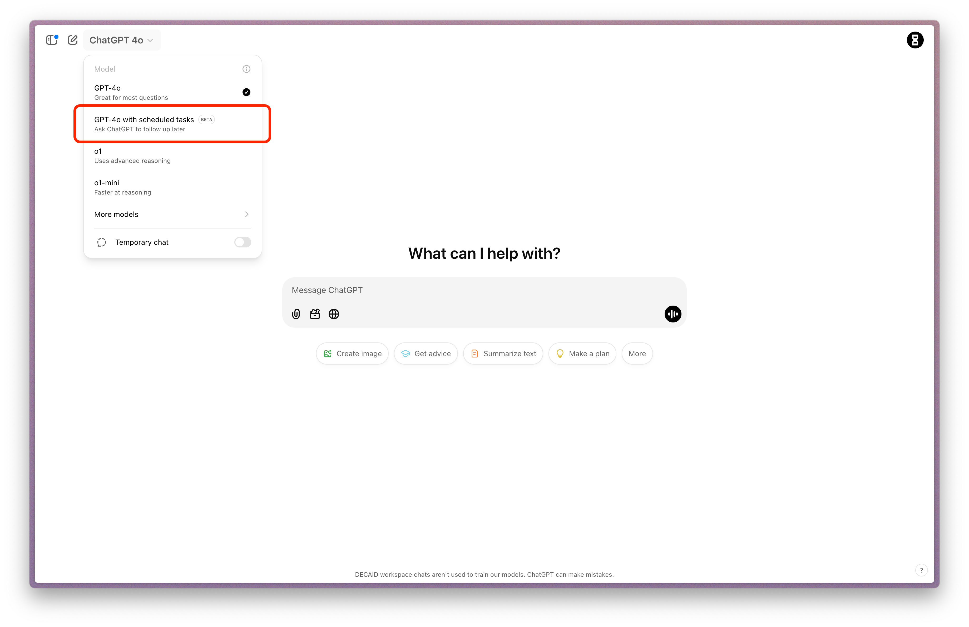 In ChatGPT, select "GPT-4o with scheduled tasks" from the model picker